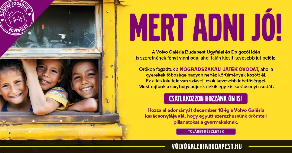 Csatlakozzon hozzánk Ön is! Hozza el adományát december 18-ig a Volvo Galéria karácsonyfája alá, hogy együtt szerezhessünk örömteli pillanatokat a gyermekeknek.